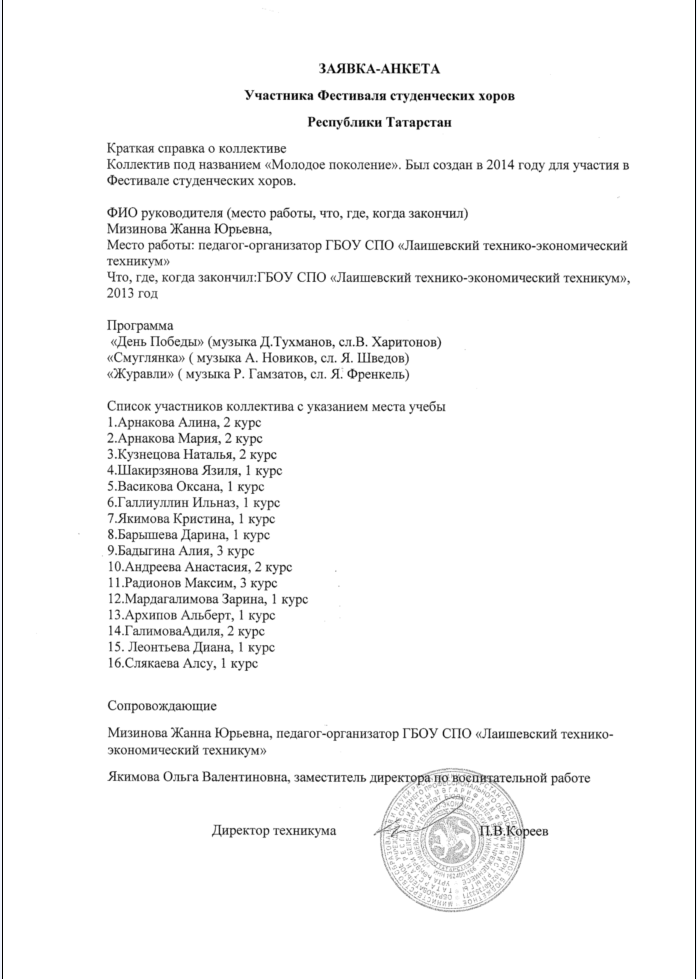 Заявка-анкета ГАОУ СПО «Казанский музыкальный колледж имени И.В. Аухадеева»